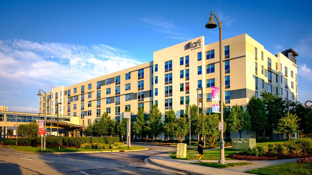 Pros: Vibrant social spaces, pet-friendly, near Fashion Outlets