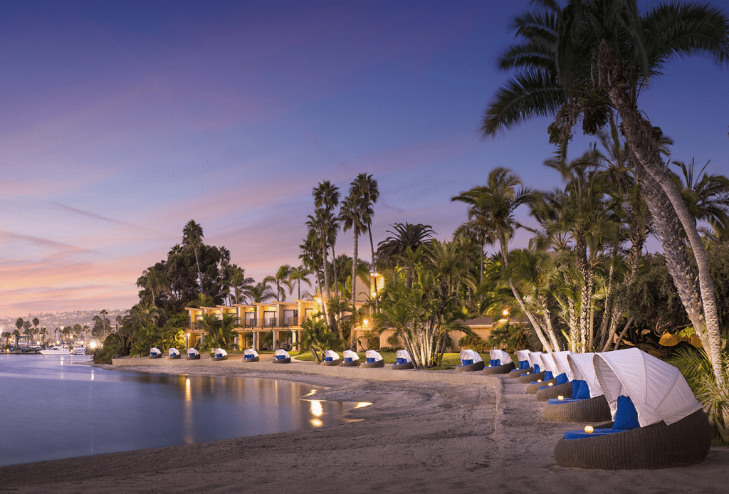 Located on a secluded peninsula, this resort offers a tropical escape with direct access to Mission Bay and the beach.