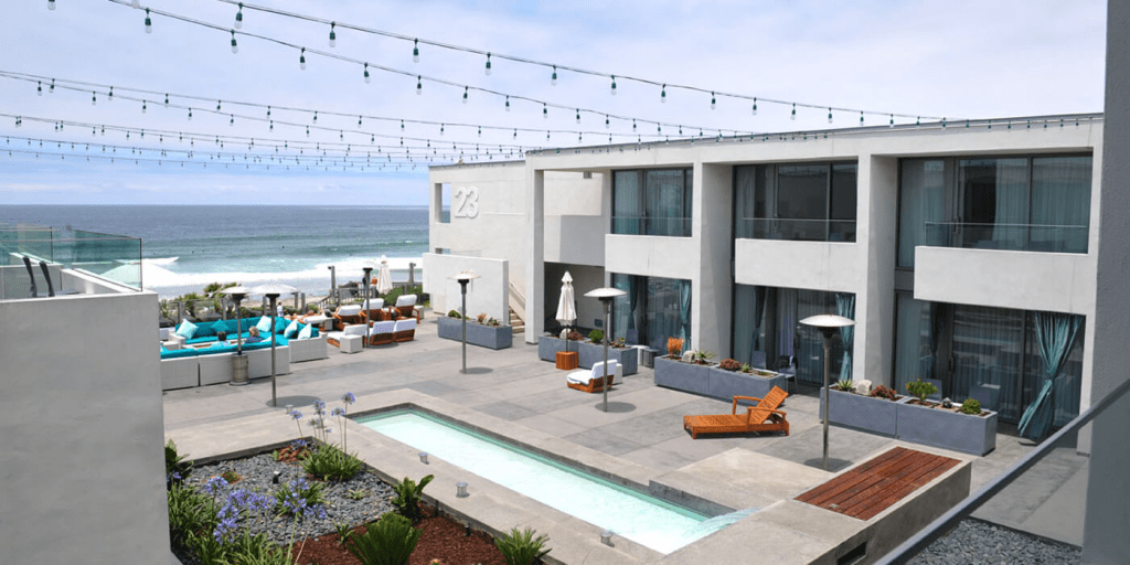 A chic, contemporary boutique hotel with sleek design and ocean views.